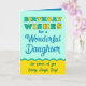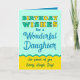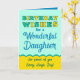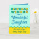 ¡Celebra el día especial de tu increíble hija con esta dulce tarjeta de cumpleaños! Llena de sentidos deseos y amor, es perfecto para hacerle saber lo maravillosa que es. Ya sea que esté cerca o lejos, esta cuidadosa carta alegrará su cumpleaños y la hará sentir amada extra. ¡Envíe hoy sonrisas, abrazos y cálidos deseos de cumpleaños a su hermosa hija! Verde / Amarillo / Azul