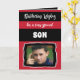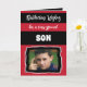 El cumpleaños desea un hijo muy especial / o personalizar para otra persona. Agrega tu foto y un mensaje. Espero que tengas un día brillante. Negro, rojo y blanco.