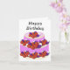 Esta colorida tarjeta de cumpleaños incluye un delicioso pastel rosa decorado con capas de crema y fruta. El texto es totalmente editable si desea personalizarlo.