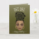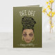 Este diseño cuenta con una hermosa mujer de cabello natural con un alto moño y tonos dorados sobre un fondo verde oliva. Personalizar tu mensaje.