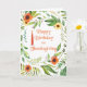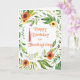 Celebra un cumpleaños juntos en Acción de Gracias con esta tarjeta. Una corona rodea el cumpleaños y el deseo de Acción de Gracias, con flores de color naranja, óxido y amarillo dorado. ¡Una vela de cumpleaños está lista para explotar!