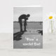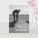 Una tarjeta de cumpleaños temática de un juego de golf para un papá, perfecta para el padre que ama el golf. La imagen es una nostálgica foto en blanco y negro de un padre mostrando a su hijo pequeño cómo balancear su club de golf en un campo de práctica. El mensaje de adentro y de afuera puede ser personalizado. En el interior se lee: "¡Feliz cumpleaños a un día de agujero en uno! ¡Te queremos mucho!" Foto de Letizia Morley.
