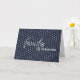 Cumpleaños para un familiar sobre fondo azul oscuro con lunares blancos