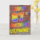 El frente de este vibrante, la diversión y las características del diseño cumpleaños-temáticas llamativas de la tarjeta de felicitación el mensaje "87.o CUMPLEAÑOS FELIZ" con las letras que tienen un arco iris multicolor tienen gusto del modelo de la pendiente, y un nombre editable coloreó amarillo, en un fondo del modelo de la pared de ladrillo. El aspecto es inspirado por el del arte de la pintada o de la calle dibujado en la pared. Las características interiores un mensaje adaptable del saludo del cumpleaños. Una diversión, tarjeta de felicitación feliz, modificada para requisitos particulares del cumpleaños como esto se pudo utilizar para enviar un mensaje del saludo del cumpleaños alguien que está celebrando su 87.o cumpleaños. [~Z0000357]