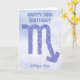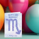 Esta linda y personalizada tarjeta de cumpleaños feliz para Escorpio en morado y lavanda presenta tu signo astrológico del Zodiaco con un hermoso brillo como las constelaciones. Personaliza este lindo diseño de astrología con tu nombre en letra cursiva para alguien con cumpleaños a finales de octubre o principios de noviembre.
