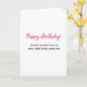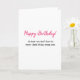 Una tarjeta divertida para amigos y familia, en un fondo blanco el texto rosado dice "¡Feliz cumpleaños!" y debajo de un texto negro moderno, "Al menos no tienes que preocuparte por morir joven ahora".