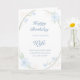 Celebre a su esposa con esta tarjeta de cumpleaños dulce, delicada. La acuarela azul florece, las vides, y las hojas enmarcan el texto en un fondo blanco. El diseño floral suave acentúa el amor y todo femeninos. Usted puede modificar su mensaje para requisitos particulares en el frente y el interior de la tarjeta. ¡Muestre a su esposa cuánto usted cuida en su cumpleaños!