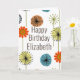 Esta tarjeta de cumpleaños moderno de mediados de siglo cuenta con una selección de flores en colores retro. Personalice con el nombre de la cumpleañera y su mensaje personal para hacer que la celebración sea aún más especial.