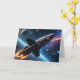 Una nave de inanición despegará para nuevos mundos y nuevas aventuras en esta tarjeta de cumpleaños temática del espacio ultraterrestre. Perfecto para cualquiera que ame los barcos espaciales, la exploración espacial y la ciencia ficción.