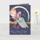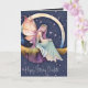 Tarjeta de cumpleaños de acuarela con una hada flotando en el cielo nocturno con alas de mariposa. Cabello lila claro y acentos dorados. Dentro tiene un bonito mensaje para la cumpleañera, pero esta tarjeta se puede utilizar para cualquier celebración. Ambos lados del interior de la tarjeta son el cielo nocturno con nubes y efecto brillo.