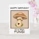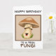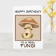 Graciosa tarjeta de cumpleaños para esos hongos en tu vida. Un hongo marrón y crema con una cara sonriente feliz le dará una sonrisa a la cara a esa persona especial.