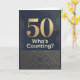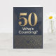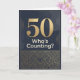 Una tarjeta de cumpleaños número 50 en tonos oscuros de negro y dorado. Un gran 50 de tamaño exagerado con las palabras "¿quién lleva la cuenta"? El mensaje interior contiene un dulce mensaje. No hay necesidad de contar. Personaliza el mensaje para tu ser querido que cumple 50 años.