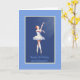 Una bailarina en su traje azul, blanco, y rosado sostiene un perfecto en la posición del pointe en esta imagen temática del ballet hecha para desear a una nieta al feliz cumpleaños. Un proyector brilla en la cara de la bailarina y ella lleva una tiara en su pelo rojo. El fondo es un azul marino con una frontera azul más ligera. El verso interior es una plantilla del texto y cambiado fácilmente o suprimido.