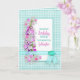 Hermosas flores de jardín sobre fondo de cuadros azul turquesa/agua con algo de rosa en el texto. Este diseño estará disponible para muchas categorías diferentes en cumpleaños junto con otras tarjetas, es decir, gracias, invitaciones, pensando en ti, etc. Cinta con gema falsa para un atractivo añadido. Tarjeta diseñada digitalmente para un efecto más realista.