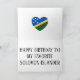 El bonito diseño incluye globos felices y cintas de ticker con las palabras "Feliz cumpleaños", cubiertas con los colores de la bandera de las Islas Salomón. El diseño está terminado con el corazón en los colores de la bandera de las Islas Salomón y el mensaje de cumpleaños. Los elementos son completamente personalizable usando la función "Personalizar". Esta colorida tarjeta de cumpleaños es el regalo perfecto para tu amigo de las Islas Salomón. © PaísesDelMundo
