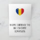 Hermoso diseño que incluye globos felices y cintas con las palabras "Feliz Cumpleaños", cubiertas con los colores de la bandera de Rumania. El diseño está terminado con el corazón en los colores de la bandera de Rumania y el mensaje de cumpleaños. Los elementos son totalmente personalizables utilizando la función "¡Personalízalo!". Esta tarjeta de cumpleaños colorida es el regalo perfecto para tu amigo de Rumania. © PaísesDelMundo