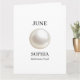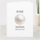 Un diseño de cumpleaños personalizado moderno que presenta la piedra de nacimiento del cumpleaños personalizado Perla de Junio ilustrada en un estilo minimalista elegante. Personalizado con un nombre para un regalo de cumpleaños atemporal y significativo inspirado en la tradición del mes de nacimiento.