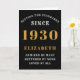 Para aquellos nacidos en 1930 y que celebran su cumpleaños, tenemos la tarjeta de felicitación ideal. El fondo negro con un diseño blanco y dorado es sencillo pero elegante. personalizar fácilmente el texto al frente y el interior de esta tarjeta de cumpleaños mediante la plantilla proporcionada. Parte de la gama de tarjetas de felicitación de los estándares de ajuste.
