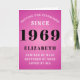 Tarjeta Cumpleaños personalizado 1969 Moda rosa Añadir tu