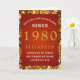 Tarjeta de cumpleaños personalizada para aquellas personas especiales nacidas en 1980 en rojo y oro. Personalizar fácilmente el texto al frente y el interior de esta tarjeta de cumpleaños utilizando la plantilla proporcionada. Parte de la gama de tarjetas de felicitación de los estándares de configuración.