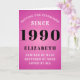 Tarjeta de cumpleaños rosa personalizada para aquellos nacidos en 1990. Personaliza fácilmente el texto del frente y el interior de esta tarjeta de cumpleaños utilizando la plantilla proporcionada. Parte de la gama de tarjetas de felicitación de estándares de configuración.