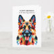 Celebra el cumpleaños de tu papá perro favorito con esta carta audaz y alegre que presenta un vibrante ilustracion pastor alemán de estilo poligonal. Compuesto por formas geométricas coloridas en azul, naranjas, verdes, rojos y más, este diseño animado añade un toque moderno y artístico a la tarjeta, perfecto para cualquier padre orgulloso de Corgi. El mensaje principal -"Feliz cumpleaños al mejor pastor alemán que haya tenido!"- es totalmente editable, así que puedes personalizar el texto para reflejar tu propio tono o humor. El interior de la tarjeta plegada también ofrece un saludo editable, ideal para hacer un mensaje de cumpleaños dulce, divertido o sincero del perro (o de todo el paquete). Una tarjeta de cumpleaños divertida y reflexiva para cualquier padre de perro amante de GSD que se merezca una celebración de cola.