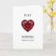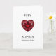 Un diseño de cumpleaños personalizado moderno que presenta el mes de julio y la piedra natal de rubí ilustrada en un estilo minimalista elegante. Personalizado con un nombre para un regalo de cumpleaños significativo y atemporal inspirado en la tradición del mes de nacimiento.
