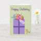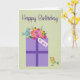 Tarjeta Cumpleaños presente con aves y flores