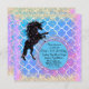 Un unicornio de silueta negra con estrellas coloridas por todas partes sobre un verde azulado fondo de quatrefoil con un borde rosa y purpurina dorado y luego un verde azulado círculo azul con una joya floreciente donde puedes personalizar tu evento. Las vibraciones de las chicas festivas.