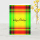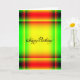 Tarjeta Cumpleaños, rojo, verde, y amarillo abstractos
