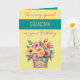 Tarjeta cumpleaños turquesa amarillo de la abuela gerbera