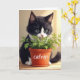 Tarjeta Cumpleaños Tuxedo Gatito Con Planta De Pescado