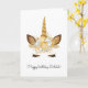 Tarjeta Cumpleaños Unicornio Floral Dorado