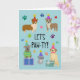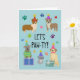 Esta es una linda tarjeta de cumpleaños con cinco perros que usan gorras fiestas. Tiene un par de regalos y huellas de pata con el texto del juego de palabras, ‘¡Vamos trapos!’