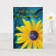 Una abeja que descansa en una flor de Black Eyed Susan decora la cubierta de esta tarjeta de cumpleaños para un padre, padre. El color es amarillo intenso y marrón, con un follaje verde azul en el fondo. Arte, imagen y verso copyright © Shoaff Ballanger Studios, 2022.