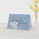 Cumpleaños de su cuñada sobre puntos de polka blanco y fondo azul con margaritas blancas.