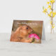 Foto de un lindo perro de pradera sosteniendo flores. Personaliza la parte delantera y la interior de esta tarjeta con tu propio mensaje.