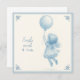 Cute square card featuring a pencil drawing of a little girl in a frilly dress floating under a balloon in the style of Delft ceramic tiles. The text is fully personalizable. Perfect for a new baby's birth's annoucement card!