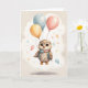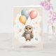Tarjeta Cute Búho de Acuarela Amarillo Azul Rojo Globos en