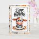 This cheerful card features an adorable wide eyed cow holding a warm cup of coffee with the fun phrase Life Happens Coffee Helps. A perfect pick me up card for coffee lovers, stressful days, encouragement, or just to make someone smile.