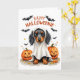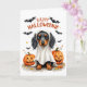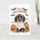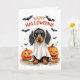 La tarjeta Cute dachshund "Happy Halloweenie" incluye un lindo fantasma Dachshund con calabazas adorables. Personalice el texto de su personalizado en el interior de la tarjeta.