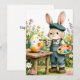 Tarjeta Cute Easter Bunny Painting Egg Whimsical Flat