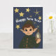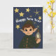 Tarjeta Cute Elf Watcher Starry Night Happy New Year Foldi