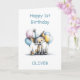 Make his first birthday even more memorable with this cute fox birthday card. The lovable fox is wearing a party hat and is sitting next to a birthday cupcake with a burning candle while surrounded by balloons.