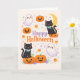 Tarjeta Cute Friendly Cats Ghosts Pumpkins Halloween