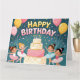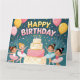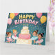 Cute Happy Birthday with balloons and ballerina dancers, cake and confetti.