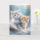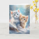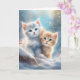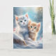 Esta tarjeta bonita representa a un par de gatitos lindos y esponjosos en un bosque nevado de invierno.
