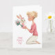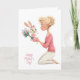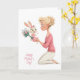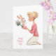 Tarjeta Cute Little Girl Bunny Bringing Mama Flowers