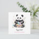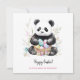 Cute Panda Oso Rústico Tarjeta botánica de Pascua. acuarelas rústicas y lino tipo panda negro y blanco con hermosos botánicos de primavera y huevos de Pascua. Texto personalizado con un precioso guión de moda.