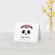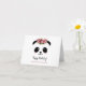 Cute panda chica Happy Birthday Greeting Card. Cara de oso panda blanco y negro al estilo kawaii con corona floral. Texto personalizado.